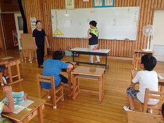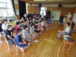 「むか~し、むかし…」と語りが始まると、子供たちはあっという間にタイムスリップしました。地元にまつわる伝説は今でも「不動の滝」や「石神様」として祭られ、安全や豊作祈願がされているとのことです。5・6年生は深程の史跡見学をしているので今回のお話で、見てきたこと、聞いてきたことがつながったようです。