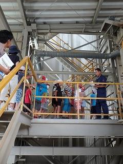 まずは鹿沼農業公社でカントリーエレベーターの見学です。カントリーエレベーターの仕組みを教えていただいた後は、サイロの上まであがり、その大きさに圧倒されました。初めて見る農薬散布用のヘリコプターやドローンにも興味津々の様子でした。