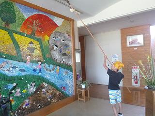 窓拭き、蜘蛛の巣とり、傘立てやゴミ箱の清掃・・・普段なかなか掃除できないところを、みんなで心を込めて、一生懸命きれいにしました。