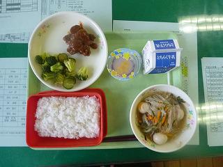 図書室には彦星と織姫が再会を喜ぶ姿が…。そして、今日の給食は七夕献立でした、星形のハンバーグとはるさめスープ、七夕ゼリーもつき、天の川を思い浮かべながらおいしくいただきました。