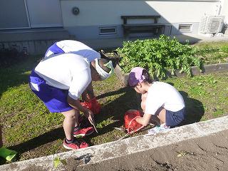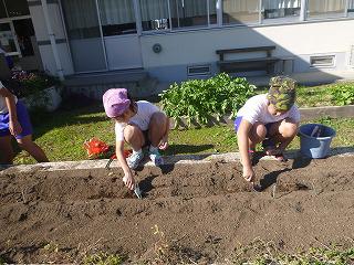 清掃の時間に球根を植えました。