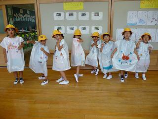 以前、1・2年生は雨の日のお散歩用に、かっぱを作りました。