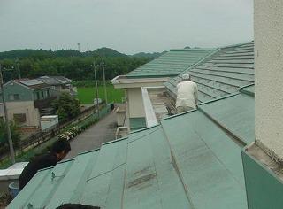 屋根裏から屋根に出てデッキのような部分に降り、手作業で取り除き、バケツで下に降ろす大変な作業でした。