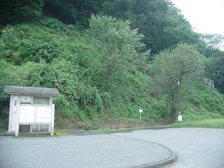 ポケットパークの駐車場奥の山際の木に、大きい蜂の巣ができています。