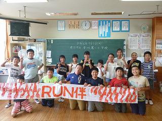今年は、更にRUN伴を盛り上げたいと、全校生で足形の横断幕を作って応援です。