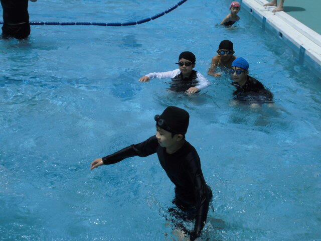 梅雨の晴れ間のよい天気に恵まれ、児童が待ちに待ったプール開きを行う事ができました。