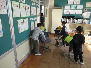 今年度の学習発表会は、例年の体育館での発表ではなく、各教室を会場とする形式を取り入れました。子供たちは、これまで授業で調べたことや、自分たちでまとめた学習の成果を、工夫をこらしながら堂々と発表しました。