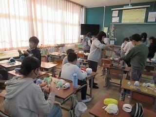 4年生以上の児童が、クラブ活動で「ボンボン」作りをしました。