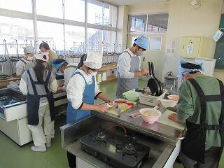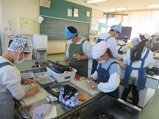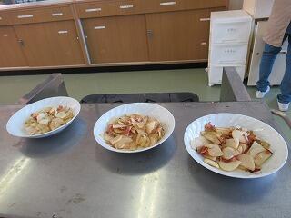 5・6年生が家庭科の授業で調理実習を行いました。今回のメニューは、「ジャーマンポテト」です!