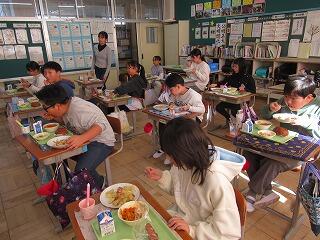 どの学級の子も、食べる姿勢がよく、静かに落ち着いて給食を食べている様子が見られました。