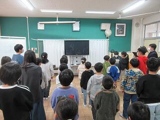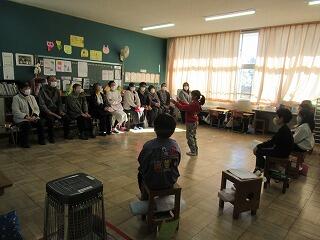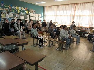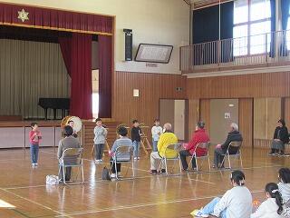 学習ボランティアの皆様をお招きし、感謝の会を行いました。 感謝の気持ちを込めた手作りメダルと花束の贈呈に加え、子供たちからは合奏、合唱、お囃子の演奏をプレゼントしました。