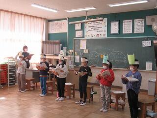 体育館のステージとはまた違い、間近で友達や保護者の皆様に発表することで、子供たちの表情には「伝えたい」という自信と熱意が溢れていました。