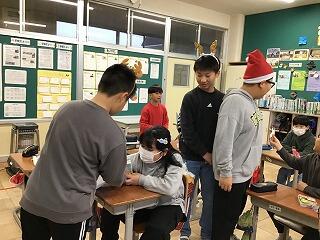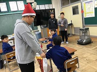 プレゼントは、委員会手作りのクリスマス折り紙です。「メリークリスマス!」の言葉とともに贈られた心のこもった贈り物に、学校中が優しい空気に包まれました。先生方がもらったプレゼントはツリーに飾り付けしました。