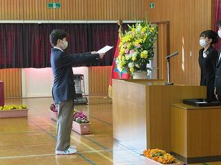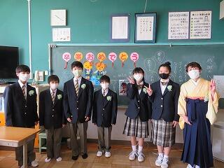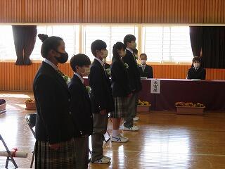 昨年度に引き続き、コロナウイルス感染拡大防止のため規模を縮小して行いました。「来賓はPTA会長、副会長のみ」、「歌は歌わない」という卒業式でしたが、今年度は在校生が参加できました。