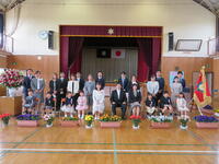 入学式は、昨年度の卒業式同様、新型コロナウイルスの感染拡大防止のため、規模を縮小し行いました。PTA会長、副会長、新入生保護者、在校生、本校職員が見守り、温かい雰囲気のなかで式を行いました。式では、新入生は担任とともに、元気に入場し、呼名されるとみんな元気に返事をすることができました。「お迎えのことば」では、後ろを向き、在校生と向き合い、少し緊張した面持ちで代表児童の話を聞いていました。上級生たちは、事前の準備から張り切り、かわいい1年生の入学を心待ちにしていました。