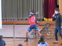 実技終了後、小野寺選手から、タイヤの空気がきちんと入っていることや、前輪と後輪のブレーキが両方きくかどうかの確認など、自転車の点検を定期的に行うことの大切さについてもお話しいただきました。