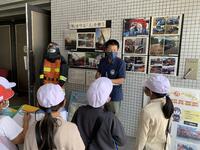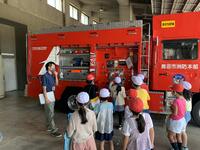 鹿沼消防署では、普段は見ることができないような、場所や物などを見学をさせていただくことができました。通信指令室では、実際に自分たちが通う小学校の周辺の地図を画面に出していただいたり、119番通報に関するクイズを出していただいたりと、消防士に指示を出す方たちの仕事を垣間見ることができました。消防士の方たちが着替えをする場所では、実際にも着ている防火服を持たせていただき、その重さに驚きました。また、その重い服を1分もせずに着替えると聞き、さらに驚いていました。消防車の車庫では、様々な消防車の車内や装備を見せていただいたり、それぞれの役割を教えていただいたりしました。さらには、救急車の中を通らせていただくこともできました。