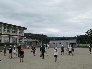 久しぶりに太陽の光が降り注ぐ中、1・2年生が合同体育を行いました。