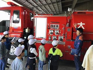 社会科見学で、消防署、屋台彫刻、川上澄生美術館を見学しました。