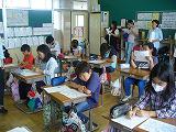 授業参観は1年生が国語(うたにあわせてあいうえお)、2年生が国語(ふきのとう)、3・4年生が複式で国語(中心を意識して文をつくろう)、5年生が社会(世界からみた日本)、6年生が図工(感じたままに花)を行いました。保護者が参観しているので、子どもたちからは、いつもよりちょっと緊張気味の表情がどの学年からも感じられました。