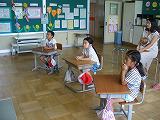 式後に学習指導主任からは、学習したことを忘れないためには、復習が大切なこと、そして、夏休み中は、①毎日同じ時刻に始める②毎日同じ場所で学習する③テレビやゲームを消してから始める④音読をする⑤読書をするなどの話が、児童指導主任からは、夏休みの過ごし方について、①自分で考えて行動する②飛び出しをしないなど心のブレーキをかける③自転車に乗るときはヘルメットをかぶる④不審者に注意する⑤地域の人にあいさつをするなどの話がありました。