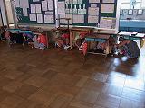 前日の雪のために、予定していた森の中の活動ができず、場所を校舎内に移しての活動となりました。