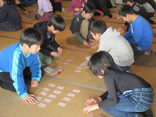 本校では、毎週木曜日の清二っ子タイム(朝の学習)を「百人一首」の時間として、毎年、100首の中から20首を決めて取り組んでおり、子供たちは、百人一首を通して日本文化に触れ、古典(和歌)に親しんでいます。1年生の子供たちは、初めはルールを覚えることさえ大変でしたが、今では、自分の好きな一首を決めて、毎週楽しんで取り組んでおり、「吹くからに~」と上の句を聞いただけで、すぐに「はいっ!」と元気に取り札が取れるまでに腕を上げている子も、たくさんいます。