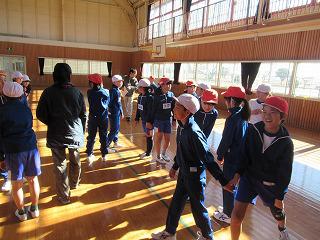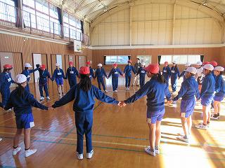 最初はお互いにやや緊張気味の様子がみられ、同じ学校の友達と固まって話をしている子供たちがほとんどでした。しかし、仲間づくりや運動などの交流活動を一緒に行っていく中で、緊張も徐々にほぐれ、それぞれの学校の子供たちが入り交じって交流をする姿が見られるようになりました。中には、幼稚園が一緒だった友達もいたようで、その頃のことを思い出して話をしている子供たちもいました。