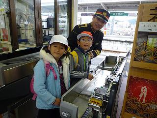 最後に見学した「新鹿沼駅」では、自分で切符を買って改札を通りました。駅員さんが、改札口の切符が通る機械を開けて、中を見せてくださいました。普段は見ることのできない場所を見学することができて、興味津々な様子でした。
