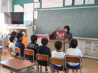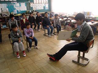 他にも、図書委員会の児童が各学年の児童に合った本を選んで、学年ごとに「読み聞かせ」を行いました。また、教職員による「読み聞か」せも行いました。読み聞かせの本の内容も、昔話、外国の物語、紙芝居、大型絵本と、バラエティーに富んでいました。中には、英語の絵本を読んだ先生もいました! どの読み聞かせも、子供たちは目を輝かせて、食い入るように聞き入っていました。