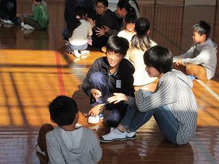 一つ目は、「バースデーライン」です。言葉を使わずに誕生日を伝え合いながら、順番に並ぶというゲームです。話してはいけない中で、苦戦しながらも懸命に友達の考えを受け止め、自分の考えを伝えようとする姿が見られました。最後には、見事、誕生日順通りに並ぶことができました。