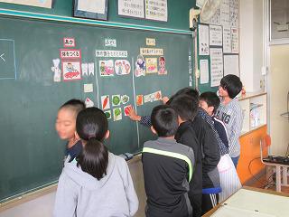 2年生も「国語」で、文をつくる活動をゲーム形式で行い、楽しみながら作文づくりをしました。