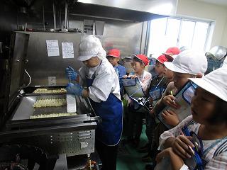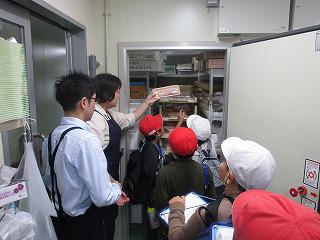 初めにお店の方に案内していただいたのは、普段は見ることのできないバックヤードでした。そこには様々な部屋があり、野菜や魚、肉などの食品を加工し、パック詰めしていました。コロッケや餃子などの総菜を調理しているところも見せていただきました。