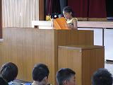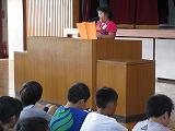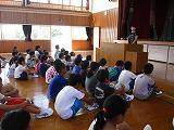 その後、体育館に移動し、訓練の感想を数人の児童が発表しました。そして、体を守る体勢の取り方についても確認を行いました。今回の成果を生かし、改善すべきは改善できるように訓練を重ねていきたいと考えています。