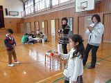 子どもたちは、「竹とんぼ」「おはじき」「けん玉」「こま」のコーナーを移動しながら遊び方のコツを教えていただきました。竹とんぼが遠くへ飛んだり、こまが勢いよく回ったりすると、子どもたちから大きな歓声が上がりました。休み時間などを利用して、さらに上手になるよう練習していきたいと思います。