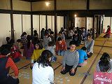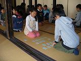 12月20日(水)に全校生で、県指定重要文化財の医王寺客殿(畳の間)において、今年度で6回目になる百人一首会を行いました。低中高学年ブロックでそれぞれ相手を代えて3回行いました。各自が客殿でのマナー(正座をする。畳の縁は踏まない。礼の合図が出たら両手を畳に付けて腰をおってあいさつする。)を守って、いつもより緊張感をもってできたと思います。百人一首会後は、1~4年生が庭の落ち葉拾い、5・6年生が客殿の畳の拭き掃除をして帰ってきました。