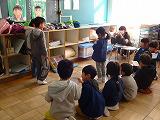 最初にお互いに自己紹介をしました。それから、1年生が生活科で作った「ペットボトルボーリング」「木の実玉入れ」「さかなつり」で年長さんに楽しんでもらいました。その後、学校の中や一日の生活の様子を、クイズを交えながら簡単に説明しました。年長さんがとても真剣に聞いてくれました。最後に校舎の中を一回りし、交流会が終了しまた。