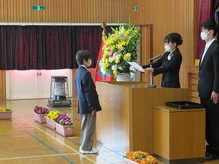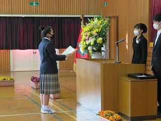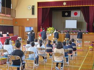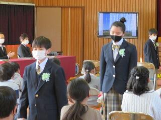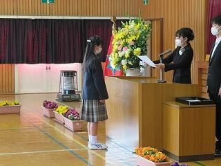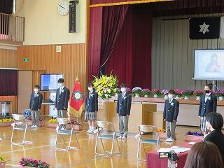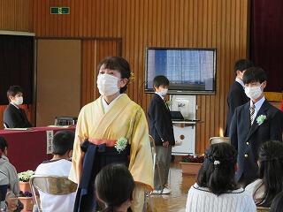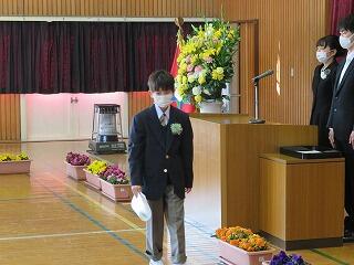 昨年度に引き続き、コロナウイルス感染拡大防止のため規模を縮小して行いました。「来賓はPTA会長、副会長のみ」、「歌は歌わない」という卒業式でしたが、今年度は在校生が参加できました。