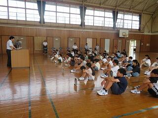 校長からは、1学期の終業式に子どもたちに出していた宿題(「あいさつ」と「ありがとう」をしっかり言えるようにしてください。相手はおうちの人です)の成果が出るかを確かめます、というお話をしました。