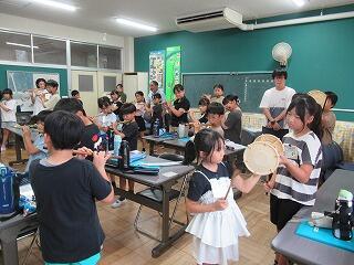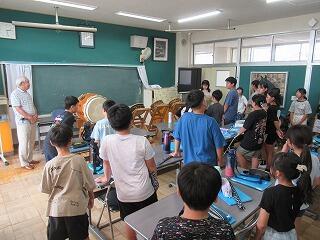 夏休みが終わり、校内に元気なお囃子の音が戻ってきました。子供たちは、久しぶりの練習にも関わらず、一生懸命に楽器に向き合い、息を合わせて音を響かせていました。