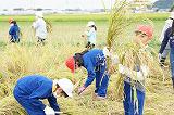9月20日(水)に全校児童44名が稲刈りを実施しました。夏の天候不順のために日照時間が短く、成長が心配されていましたが、例年並みの収穫ができたように思います。稲が風で倒れていたので、子どもたちは、刈りづらそうでしたが、安全に気を付け上手に刈ることができました。そして、収穫の喜びを味わっていました。