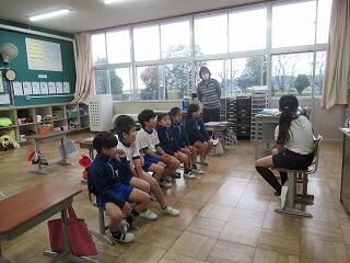 そんな子供たちのために、学校運営協議会委員で本校出身でもある益子純夫様が走り方の指導をしてくださいました。肘を90度に曲げて、しっかり顔の前まで振ることや走るペースなどを教えてくださいました。