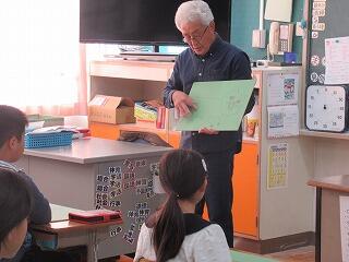 毎朝、なかよし委員会の児童が各教室を回り、児童たちを前に「おはようございます!」と、あいさつをし、元気な明るい声が校内に響き渡っています。