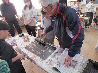 3・4年生 版画教室 〜 大門先生に「刷り」をご指導いただきました11/18(火)