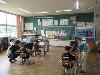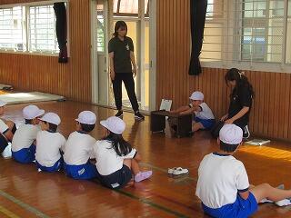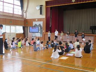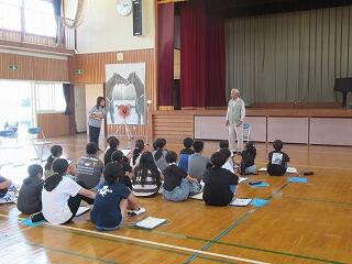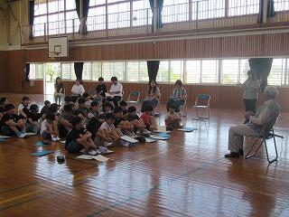 現在、前期内地留学中の本校教員が、研修の一環として本校を訪れ、1・2年生に読み聞かせを行いました。