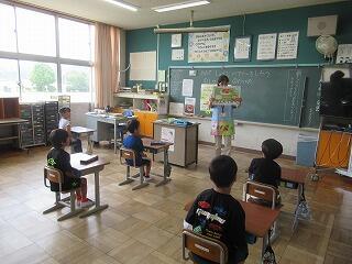 3・4年生を対象に、粟野地区学校給食共同調理場の先生をお招きして、朝食の大切さについて学ぶ授業を行いました。