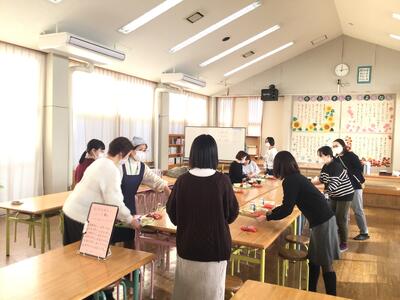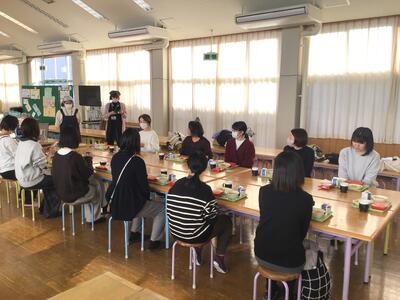 日頃、給食ボランティアとして、子供たちの給食の準備などにご協力いただいている皆様との給食試食会です。