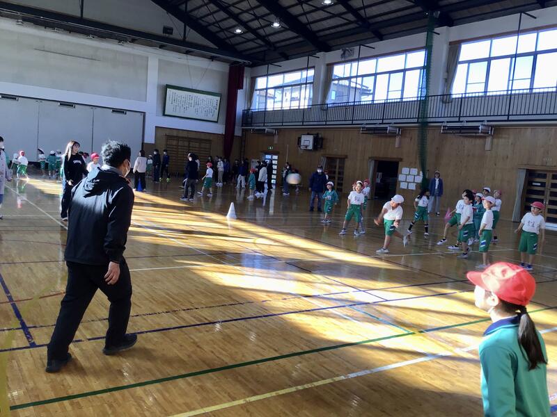 保護者の皆さんも負けてはいないようですが、子供たちが投げる低い球に手こずる様子も見られます。