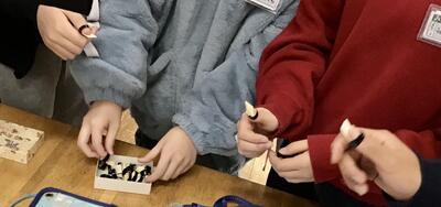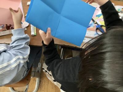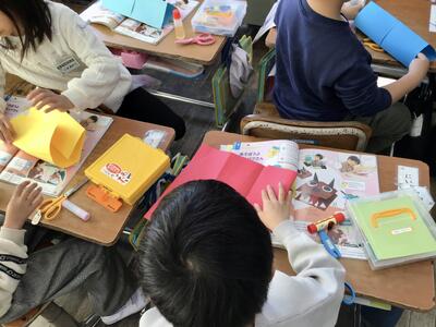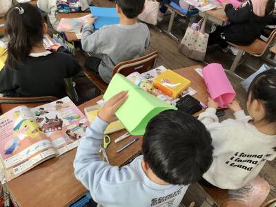 ここからどうなるのかが楽しみな、1年生の図工の時間でした。