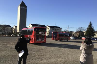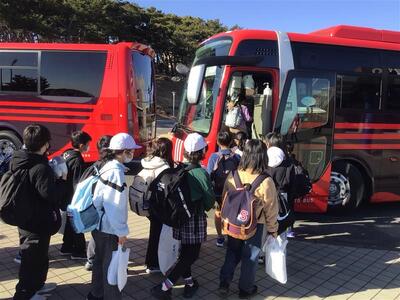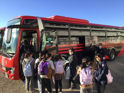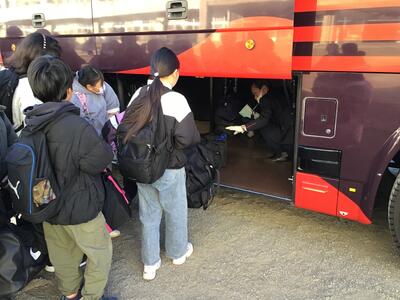 荷物をバスの荷物室に入れて、いよいよ出発ですね。